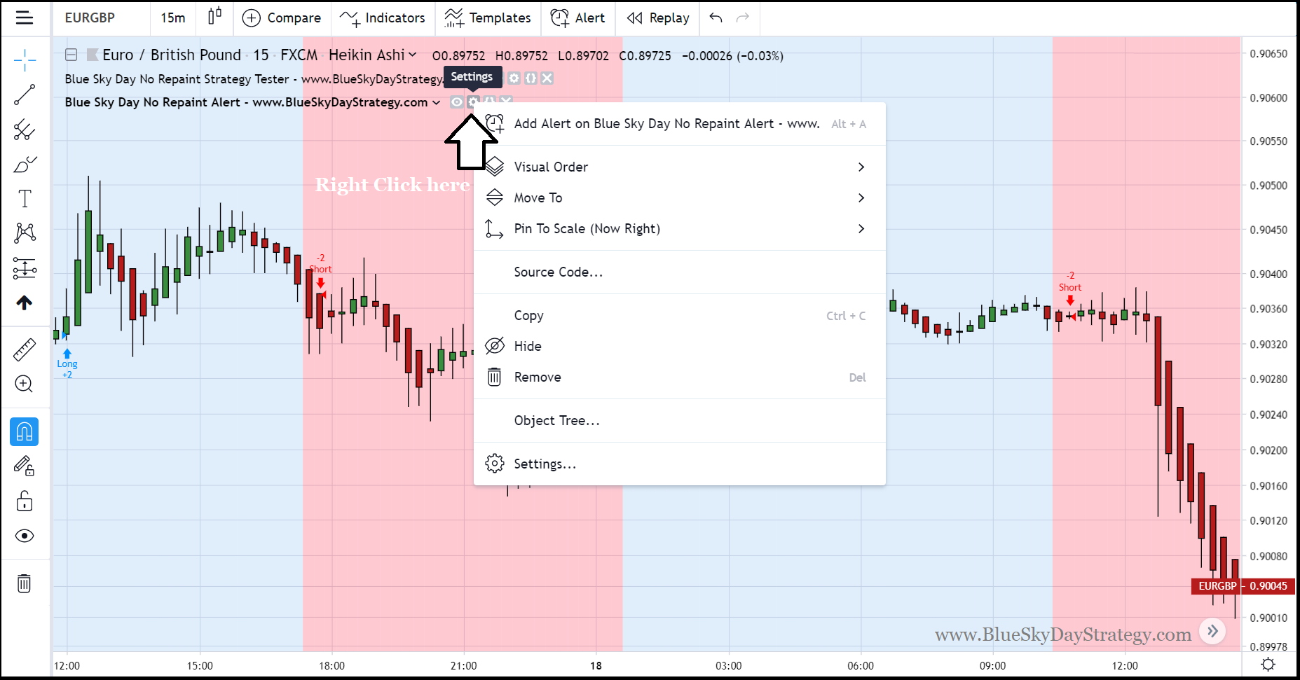 Here, with “Blue Sky Day No Repaint Strategy”, we have to choose the 3rd option “Once Per Bar Close”