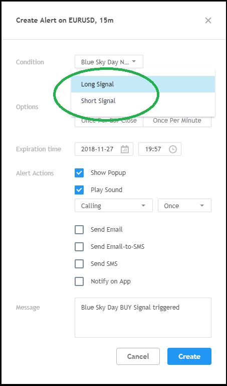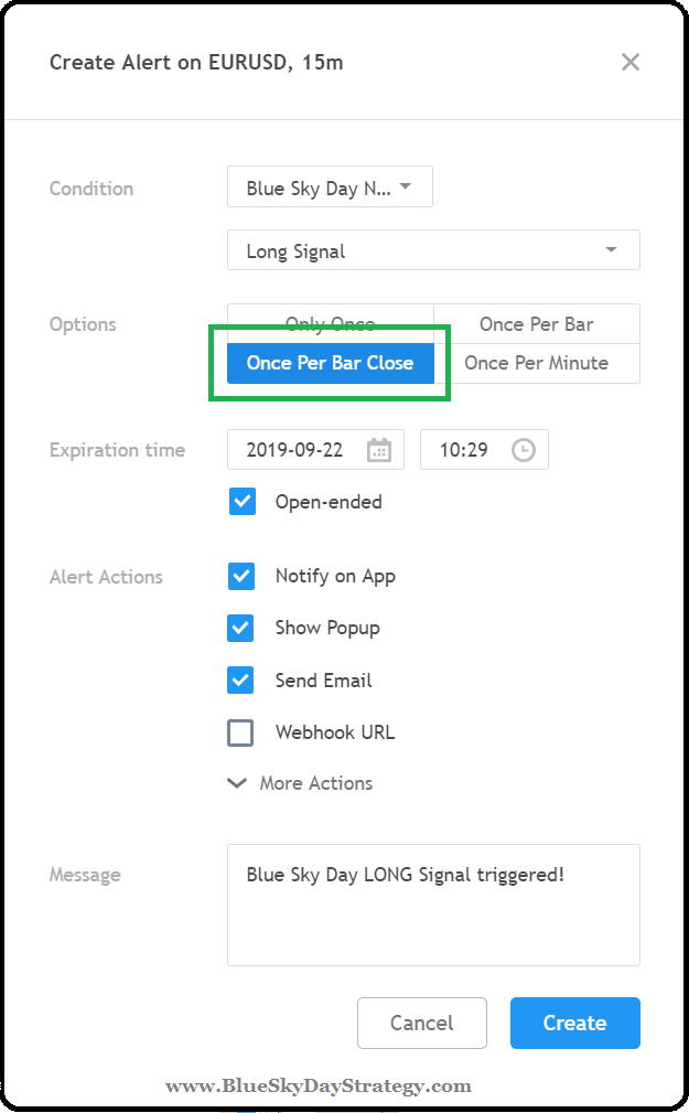 Blue Sky Day No Repaint Strategy: How to Set-Up Signal Alerts in Tradingview?